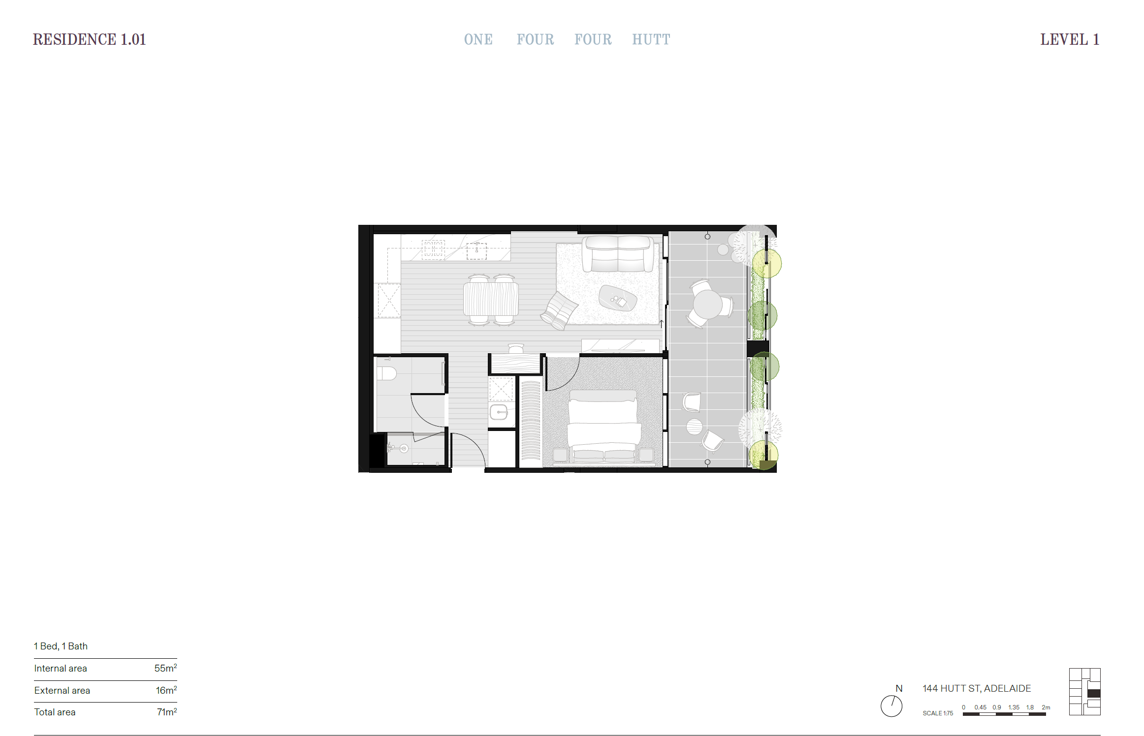 One Four Four Hutt presents a collection of thoughtfully designed one-bedroom apartments in the heart of Hutt Street, offering a comfortable and connected way of living. Each home has been carefully planned for low maintenance everyday life, with practical layouts, considered storage and quality finishes that feel modern and welcoming. Expansive windows bring in natural light, creating bright, pleasant living spaces that are easy to enjoy from morning through to evening.