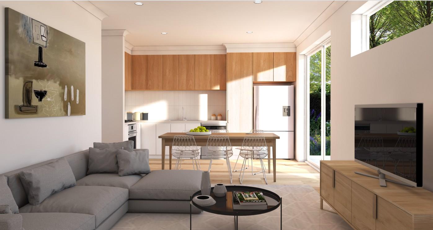 Step inside and be impressed by the sense of space, enhanced by 2.7m ceilings and expansive open-plan living area. The contemporary kitchens are beautifully appointed with stainless steel appliances, including a dishwasher, complemented by soft-close cabinetry for a sleek and refined finish.