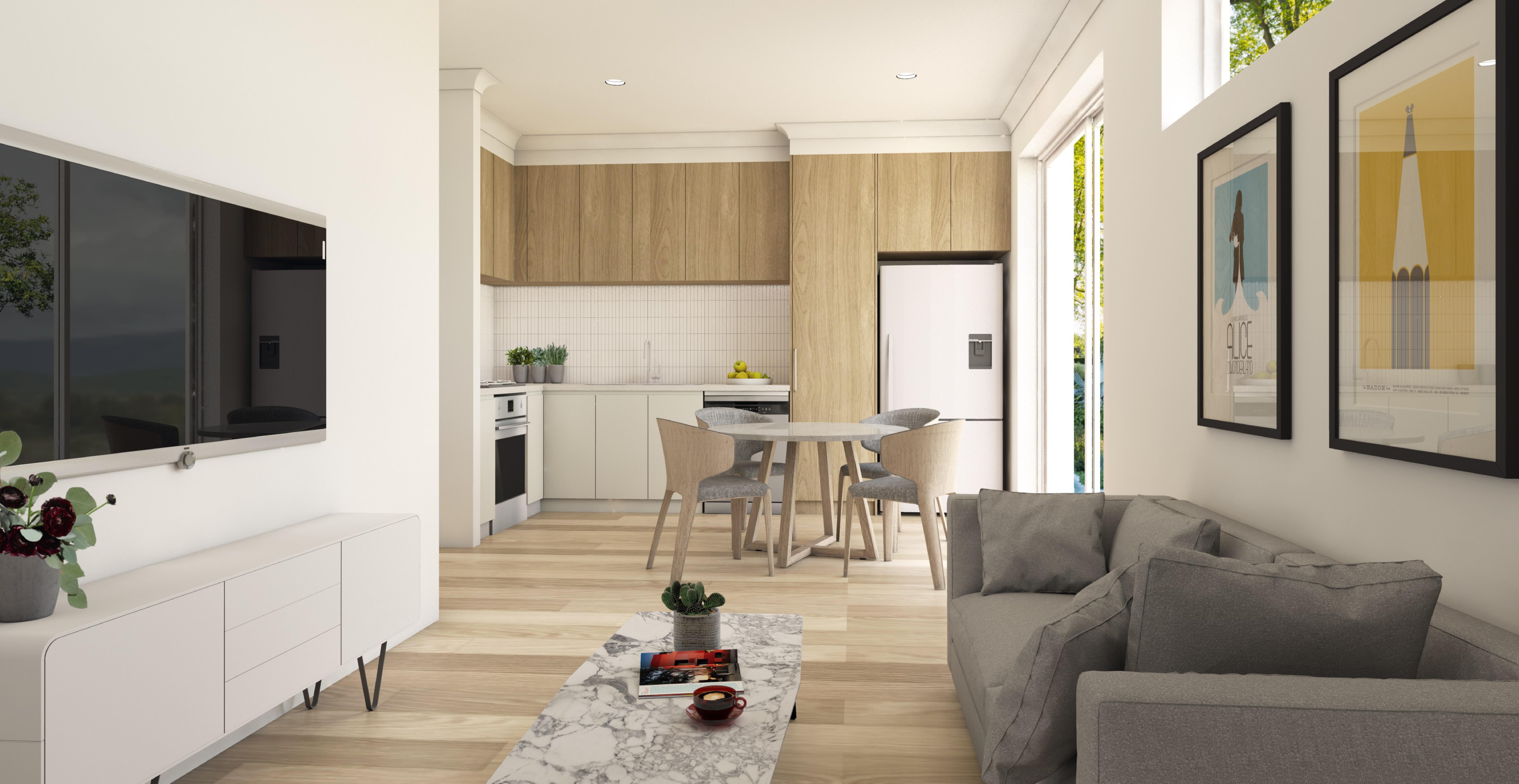 Each home has been thoughtfully planned across two well-zoned levels, combining practical design with low-maintenance living. The ground floor centres around an open plan kitchen, living and dining space that connects seamlessly to the private courtyard, creating a comfortable area for both everyday living and entertaining. While a European style laundry and convenient downstairs powder room add to the practicality of the layout. A secure single garage with internal access provides additional convenience and peace of mind.